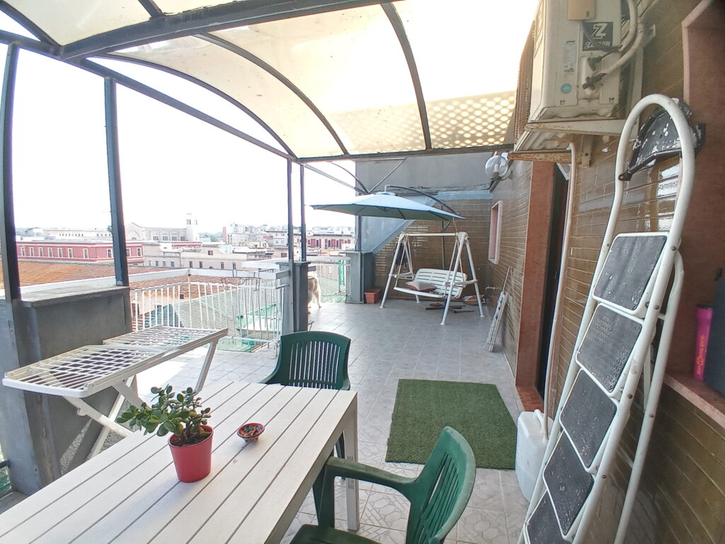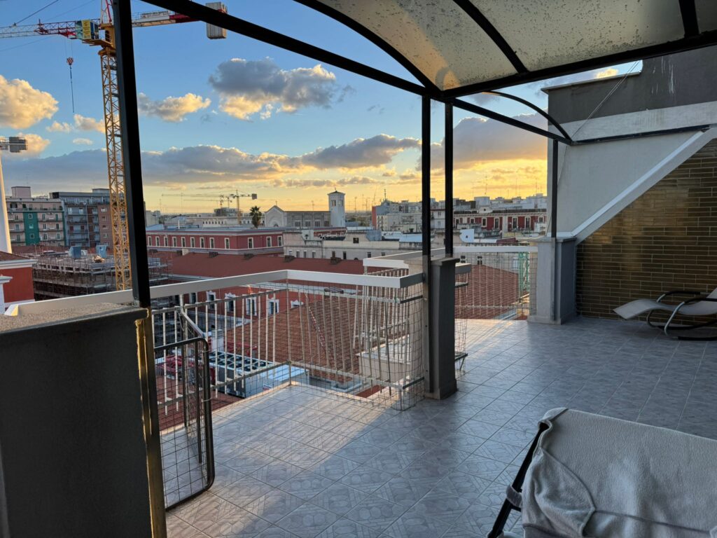 ATTICO Via Nicolai difronte al nuovo CNR in buon contesto abitativo a pochi passi dal quartiere murattianoproponiamo ampio ATTICO mq 140 circa in stabile con ascensore con facciata appena ristrutturata.L’appartamento è composto da DOPPIO INGRESSOampio salone e cucina abitabile con balcone interno e ampio terrazzo mq 34 circa esterno con vista panoramica. doppi servizi, 2 camere da letto comode e studio,Luminoso, Termoautonomo, triplo affaccio, Climatizzato.Prezzo euro 270.000Per infoMC STUDIO IMMOBILIAR.