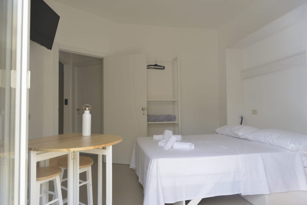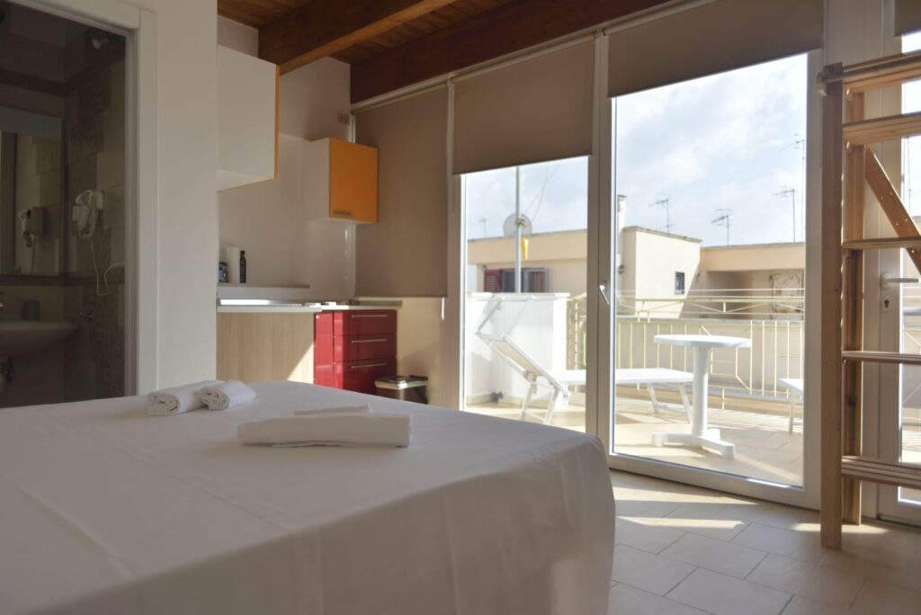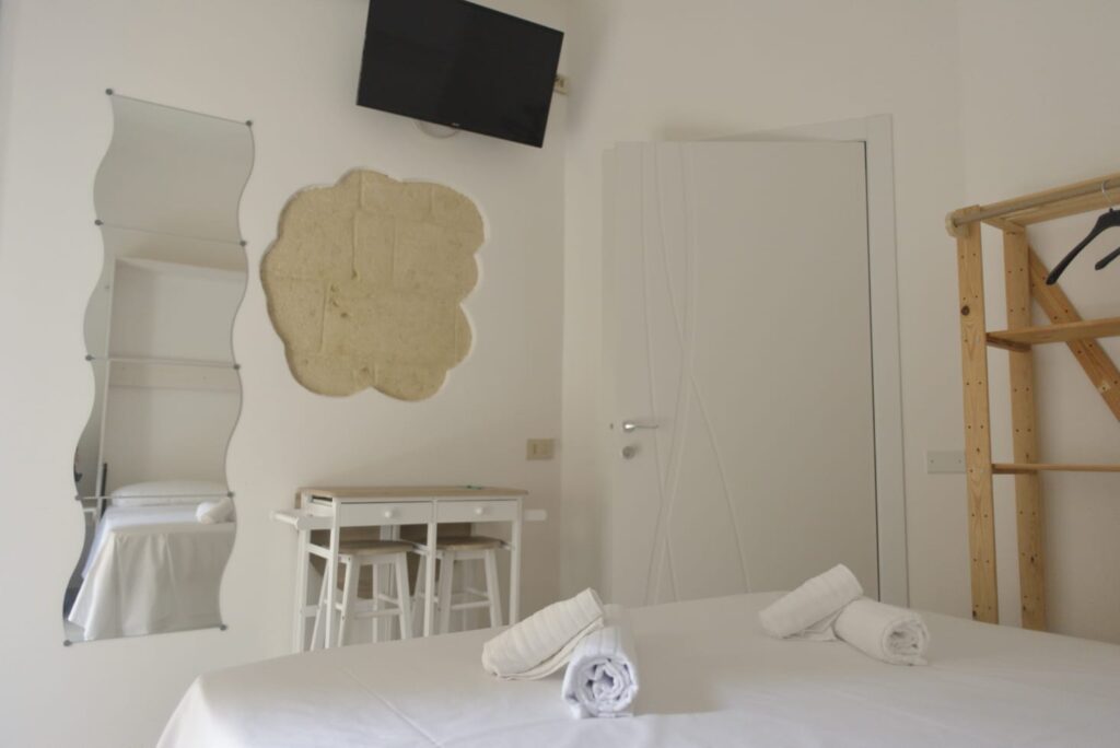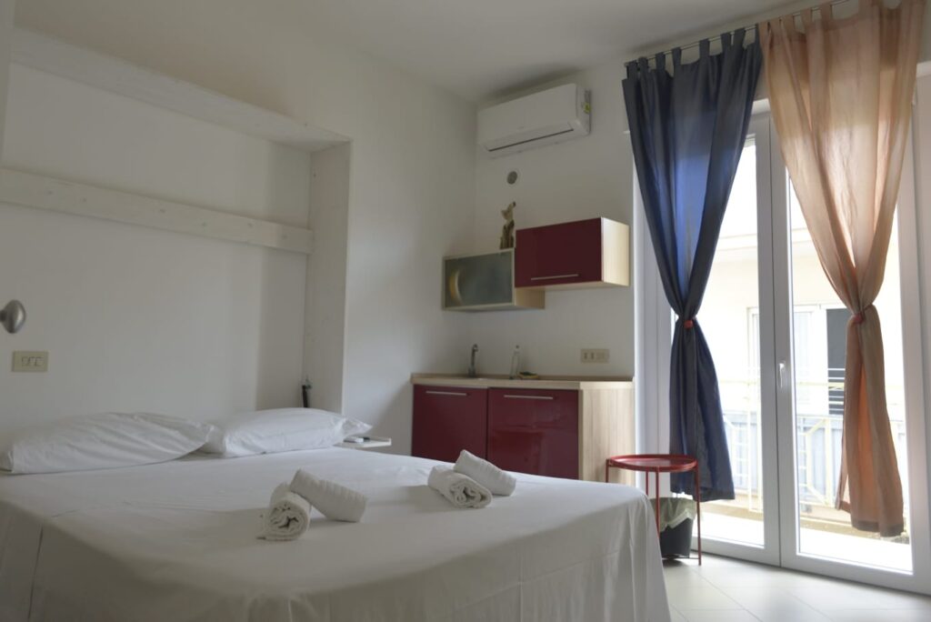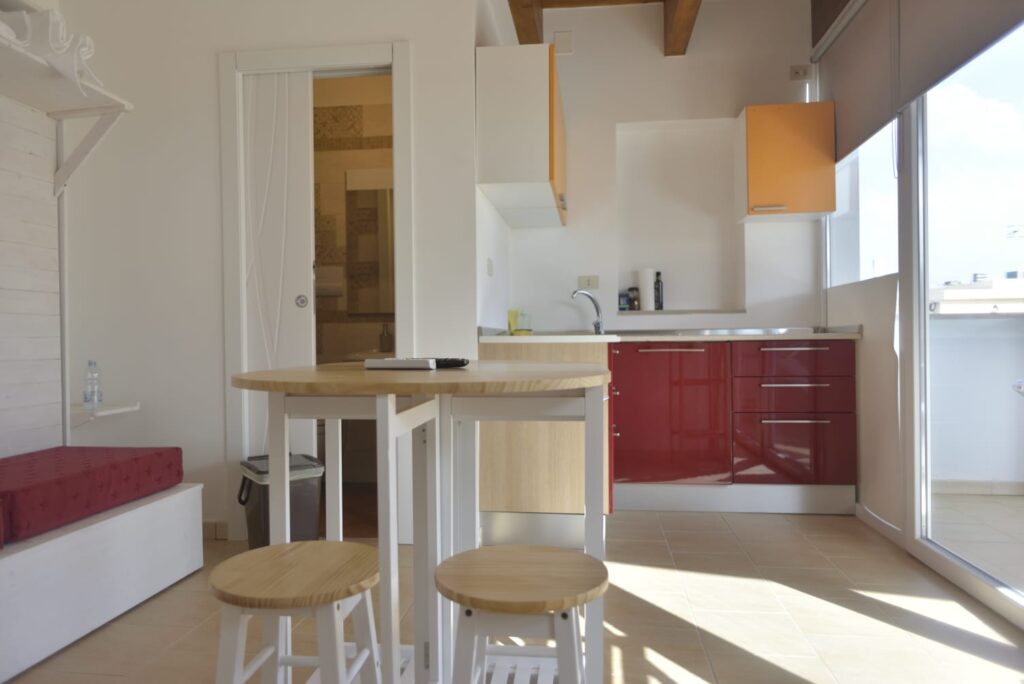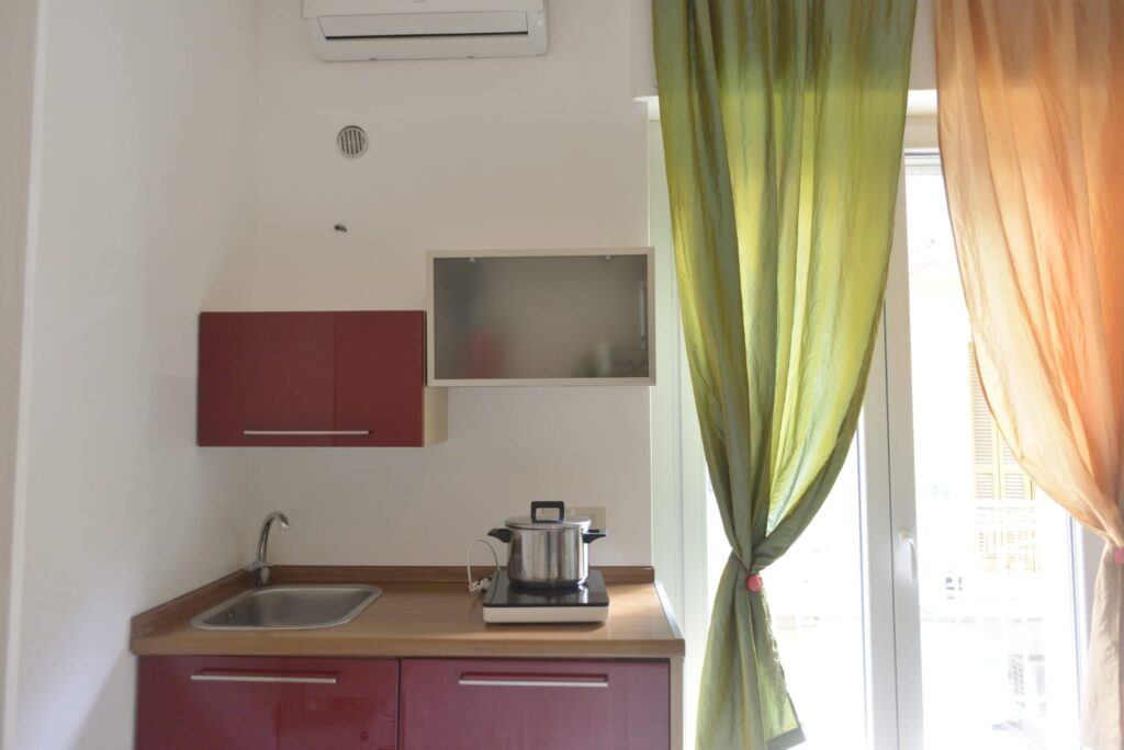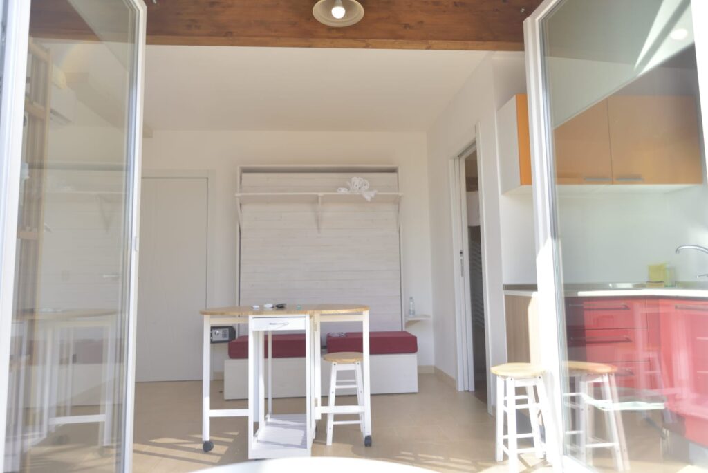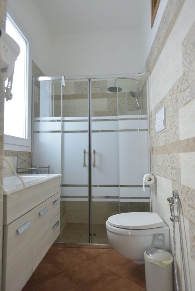 I tre piani sono stati suddivisi in 6 camere con bagno privato, tre delle quali con angolo cottura e ampio balcone utilizzabili come camere singole o come appartamentini di 2 vani, infissi in PVC doppio vetro con gas